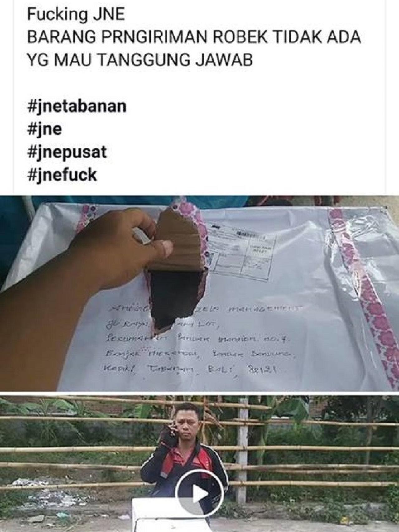 Keluhan mendapat paket tersebut ia unggah di Facebook pada Sabtu,27 Oktober, bersama dengan sejumlah video dimana ia dan sang istri memaki-maki kasar sang kurir.